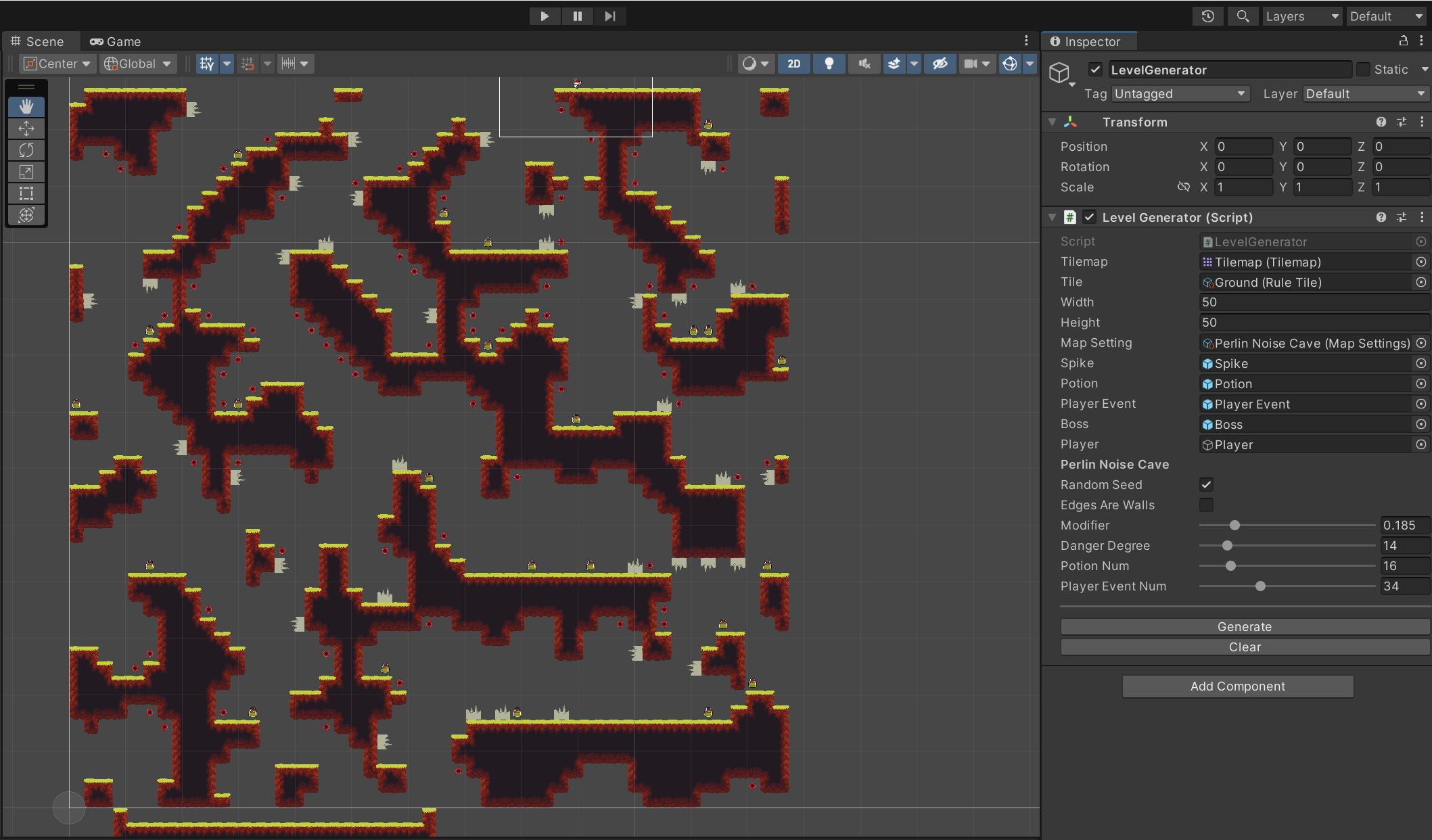 It can generate diverse levels by adjusting the modifier of Perlin noise, the danger