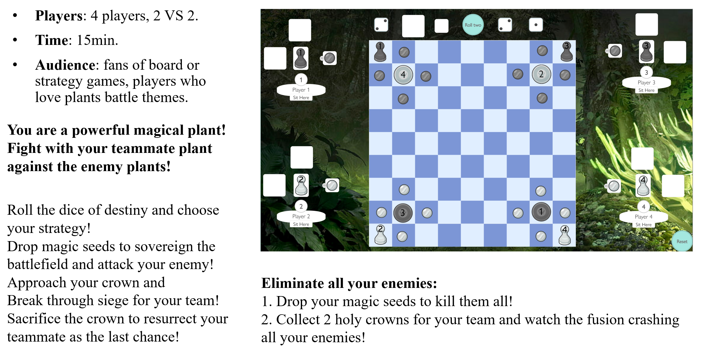 Battle of the Plants is a 2v2 board game. I spend much time designing the core mechanics